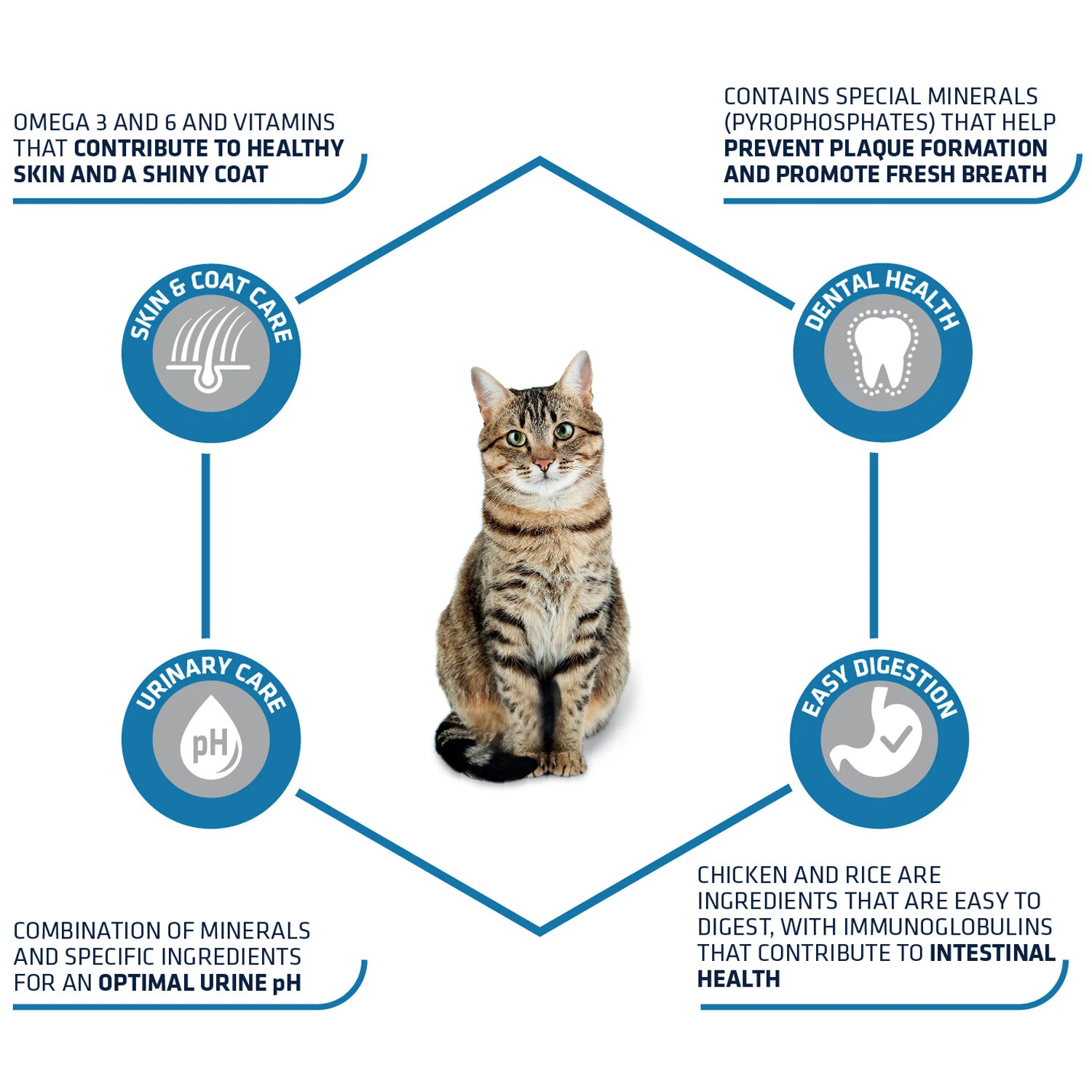 Kip (21%), maïs, gedehydrateerde gevogelte-eiwitten, maïseiwit, rijst (8%), dierlijk vet, gestabiliseerd met gemengde tocoferolen van natuurlijke oorsprong, gedehydrateerde varkenseiwitten, gehydrolyseerde dierlijke eiwitten, visolie, kaliumcitraat, plasma-eiwitten, natuurlijk bron van immunoglobulinen (0,5%), kaliumchloride, zout, natuurlijke polyfenolen.