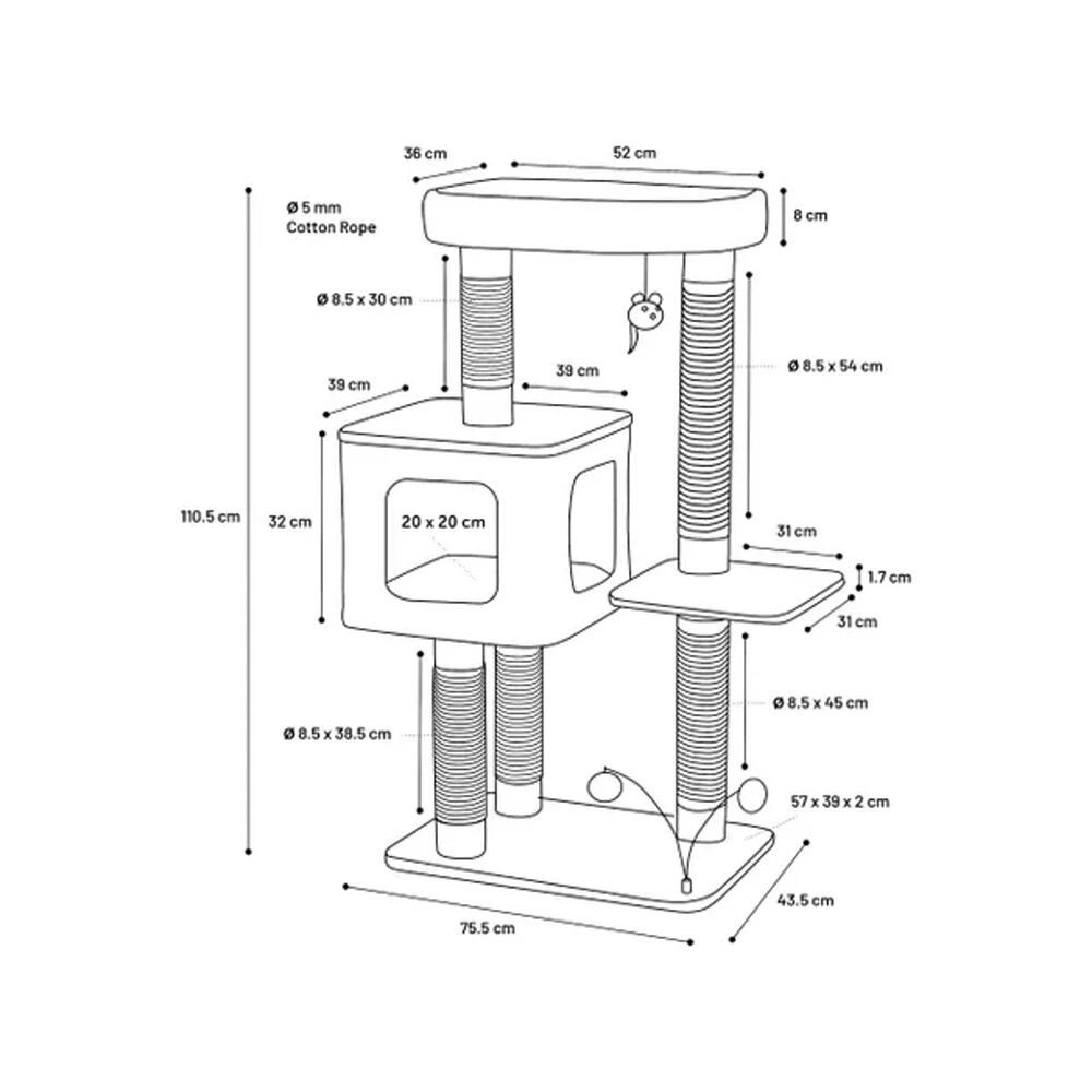Ontdek de elegantie en het ultieme comfort van de Fati krabpaal van Flamingo voor uw geliefde kat. Met zijn trendy design, schuilhuisje, ligmand en katoenen krabtouw biedt deze krabpaal de ideale plek om te spelen, te rusten en nageltjes te verzorgen. Bovendien zorgt het uitneembare kussen ervoor dat het schoonmaken een fluitje van een cent is!
