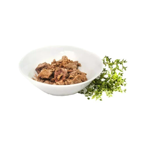 Het voer is bijzonder smaakvol en bevat vlees en organen van kip en varken.