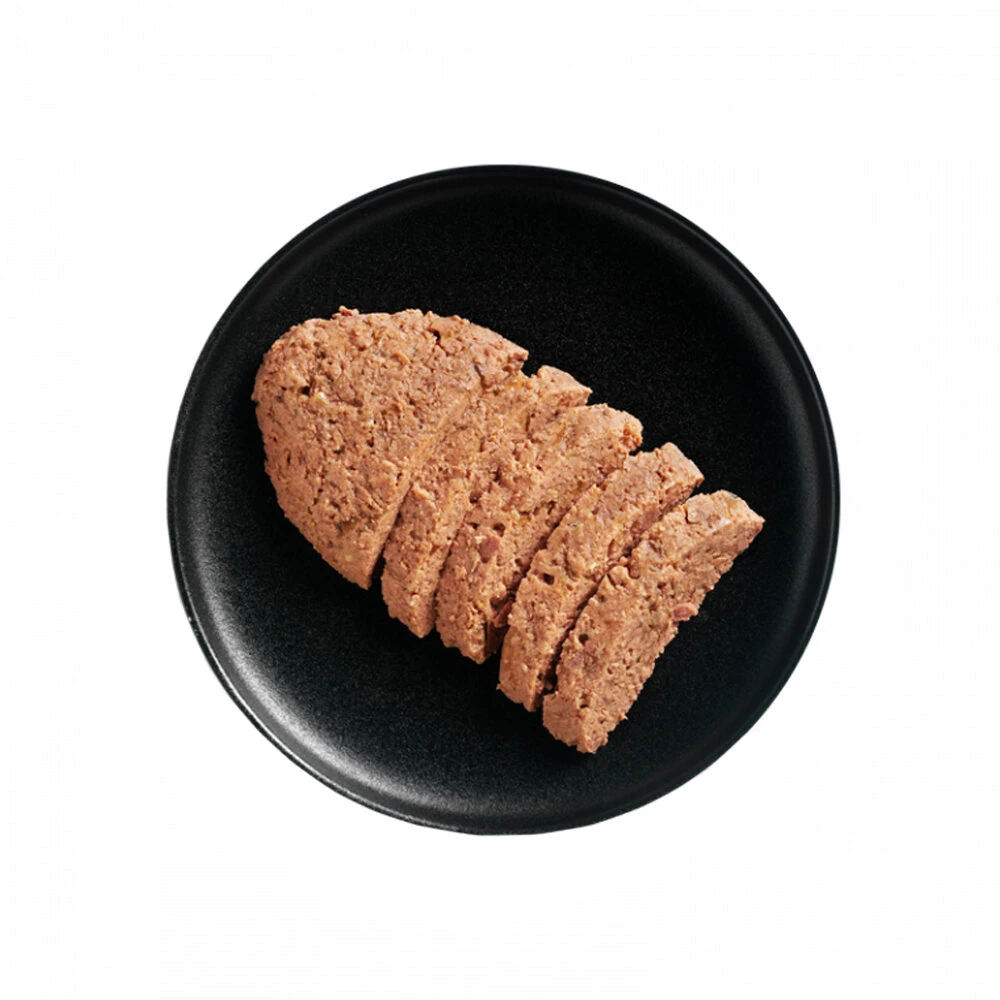 Pluimveevlees, -hart, -lever, -spiermaag (70 %); Pluimveebouillon (28,6 %); Eierschalen, gedroogd (0,5 %); Mineralen (0,5 %); Zalmolie (0,4 %)