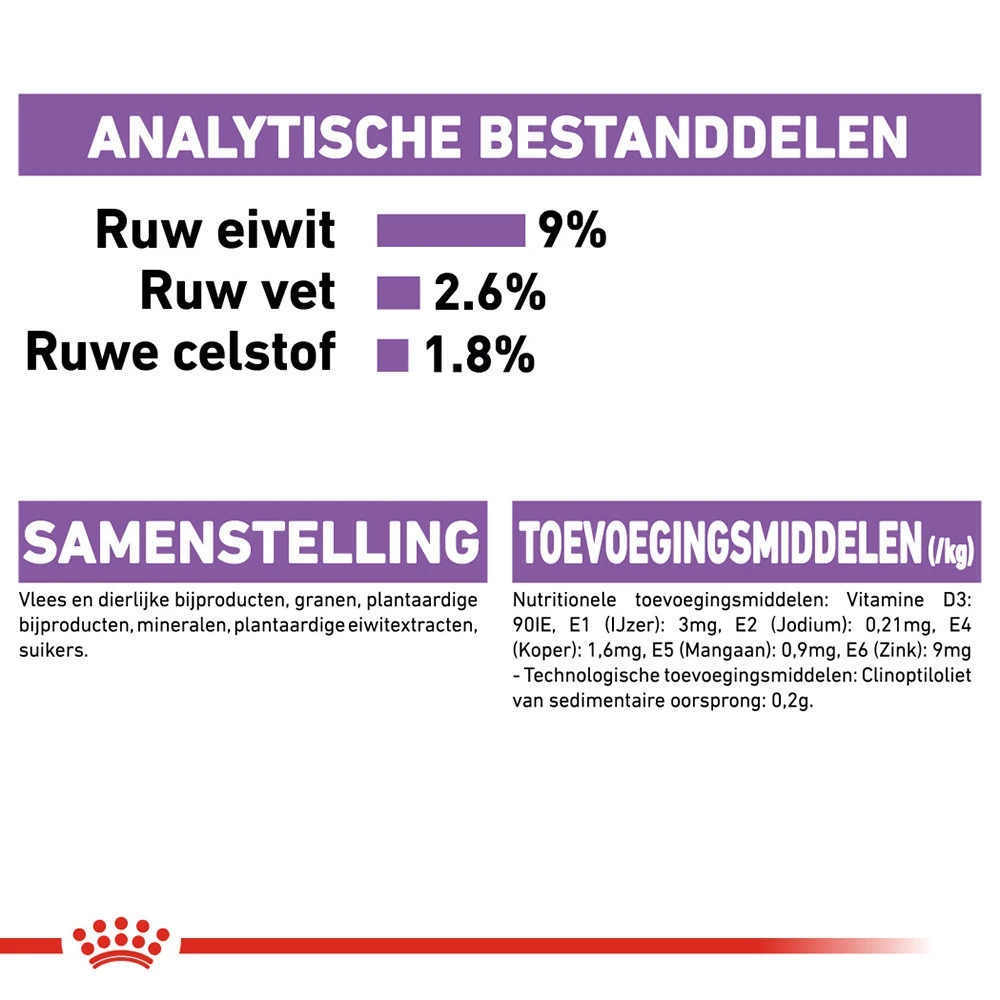 Katten die gesteriliseerd of gecastreerd zijn, krijgen een verandering in de hormoonhuishouding. Het gedrag en behoeften van uw volwassen kat kunnen veranderen. De kans op overgewicht kan groter worden, omdat uw gesteriliseerde of gecastreerde kat minder calorieën nodig heeft. Daarom is het belangrijk om een speciale voeding aan te bieden, waardoor uw kat op het ideale gewicht kan blijven. Met de Sterilised in Gravy van Royal Canin draagt u bij aan het behoud van gezond gewicht en gezonde urinewegen.